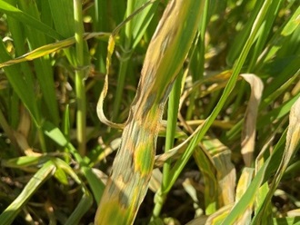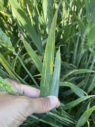 Gulrust (foto) bør du holde øje med i alle hvedesorter, men særligt i Champion, DLG Wheat Mix Robust, Kvium og LG Kermit. Bekæmpelsestærsklen i disse modtagelige sorter er 1% angrebne planter fra vækststadie 30.