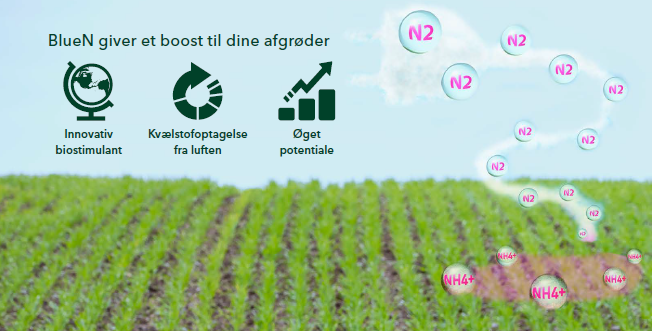BlueN er en biostimulant, som må anvendes af økologer og består af bakterier, der efter udsprøjtning trænger ind i plantens blade.