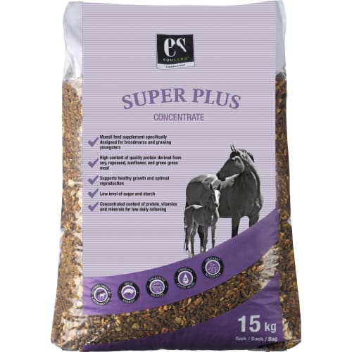 Müsli fuldfoder med velsmagende og sunde råvarer. Energi fra bl.a. olie, varmebehandlede sojabønner og korn. Letoptagelige proteinkilder med god aminosyreforsyning til vækst samt Omega-3-fedtsyrer fra specialbehandlet hørfrø. Foderet kan bruges under hele drægtigheden, men kan også startes op i sidste del af drægtigheden og udfodres igennem laktationen, hvor det giver optimale betingelser for foster/føl. Også god til plage i god vækst samt heste i tilridning, fordi blandingen kan bidrage med styrke og flot fylde. Indhold Råvareindhold: Havre, Majsflager (varmebeh.), Hvedeklid, Havreklid, Sojabønner (toasted)**, Solsikkemel (specialbeh.), Sojaskrå (toasted) 1), Rørmelasse, Rapsmel (specialbeh.), Bygflager (dampvalset), Roesnitter, Grønmel, Ærter (ekstruderede), Æblekvas, Rapsolie, Calciumcarbonat, Ølgær, Hørfrø (ekstruderet), Kornmel, Fodersalt, Byg (varmebeh.), Monocalciumfosfat, Vitaminer og mineraler inkl. organiske mineraler. ** Fremstillet af genmodificeret soja Indhold pr kg: Energi/FE pr. kg 0,87, Råprotein 14,8%, Ford. 125 g, Lysin 7 g, Råfedt 7%, Råaske 8,8%, Fibre 10,6%, Stivelse 25%, Sukker 5,7%, Calcium 12,7 g, Fosfor 7,6 g, Magnesium 3,4 g, Natrium 4,4 g, Jern* 113 mg, Zink* 150 mg, Kobber* 41 mg, Mangan* 82 mg, Selen* 0,7 mg, Jod 1,3 mg, Kobolt 0,3 mg, Vitamin A 14064 I.E., Vitamin D3 2739 I.E., Vitamin E 349 mg, Vitamin B1 13,3 mg, Vitamin B2 5,3 mg, Vitamin B6 4,8 mg, Vitamin B12 0,05 mg, Niacin 18 mg, Folinsyre 5,6 mg, Biotin 1,16 mg, Vitamin C 121 mg, Vitamin K 3,2 mg, D.pantotensyre 16,7 mg, Cholinclorid 201 mg. * Tilsat delvist i organisk form. Dosering Dosering: Vejledende fodringseksempler: