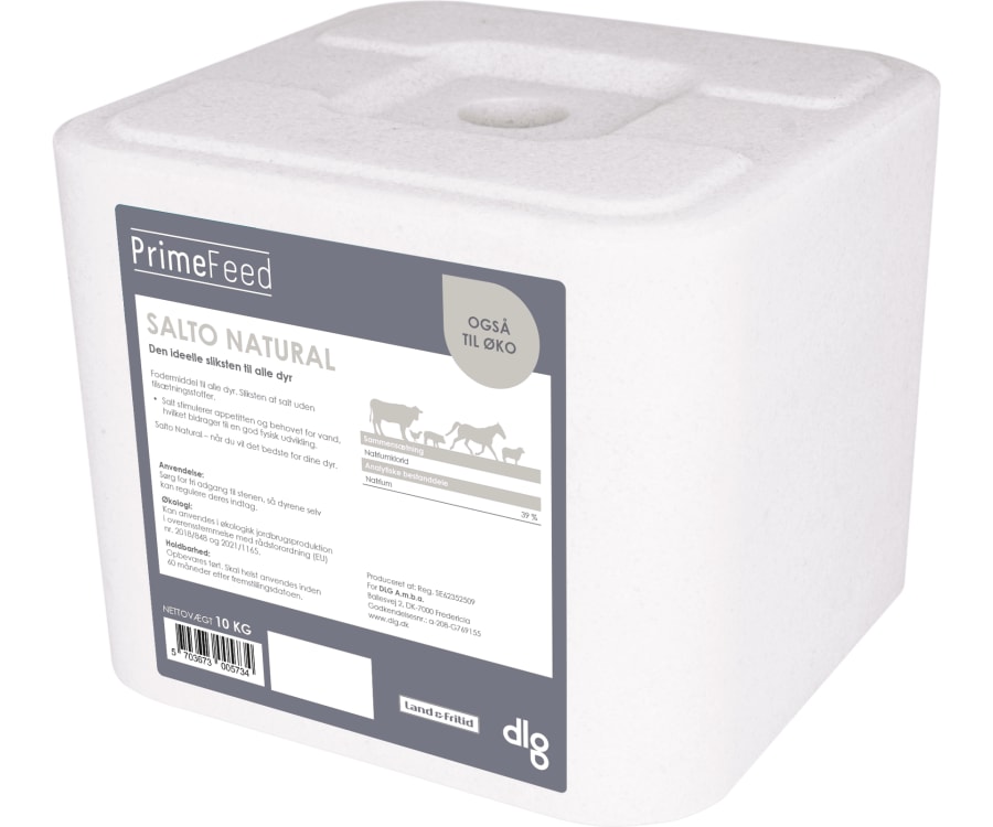 Indhold Sammensætning: Natriumklorid Holdbarhed: 60 måneder. Dosering Den rene saltsten Sliksten af naturligt salt uden tilsætningsstoffer. Godkendt til økologisk landbrug i henhold til forordning (EF) nr. 834/2007 og (EF) nr. 889/2008.